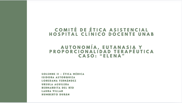 Como Comité de Ética Asistencial del Hospital Clínico Docente UNAB, nos reunimos para deliberar el caso de Elena, una mujer de 58 años con esclerosis lateral amiotrófica avanzada.